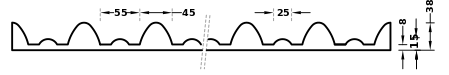Piirros esittää formlinerin muottipinnan poikkileikkausta.