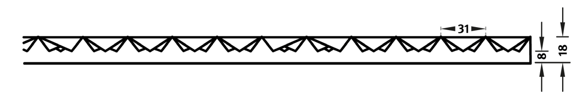 Määritetyn 50-kertaisen formlinerin leveys on kiinteä ja takaa rakenteen jatkuvuuden lineaarisissa kuvioissa. Kuvion pituussuunta on vaihteleva, ja se voidaan tilata 1 m:stä enimmäismittoihin asti 10 cm välein.