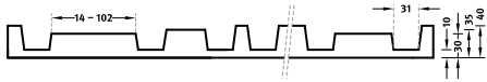10 ja 50 käyttökerran muottipintojen ilmoitetut leveydet ovat kiinteitä mittoja ja varmistavat rakenteen jatkuvuuden lineaarisissa kuvioissa. Kuvion pituussuunta on muuttuva ja voidaan tilata 1 metristä enimmäismittaan asti 10 cm välein.