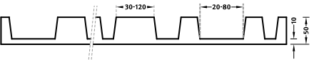 10 ja 50 käyttökerran muottipintojen ilmoitetut leveydet ovat kiinteitä mittoja ja varmistavat rakenteen jatkuvuuden lineaarisissa kuvioissa. Kuvion pituussuunta on muuttuva ja voidaan tilata 1 metristä enimmäismittaan asti 10 cm välein.