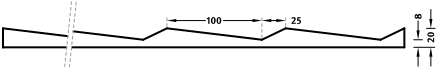 10 ja 50 käyttökerran muottipintojen ilmoitetut leveydet ovat kiinteitä mittoja ja varmistavat rakenteen jatkuvuuden lineaarisissa kuvioissa. Kuvion pituussuunta on muuttuva ja voidaan tilata 1 metristä enimmäismittaan asti 10 cm välein.